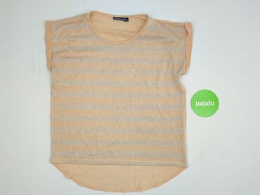 Bluzka damska ESMARA - Kolor: beżowy/brzoskwiniowy - Wzór: poziome pasy ze srebrzystą, połyskującą nitką na przodzie - Krój: luźny, z obniżoną linią ramion (krótkie rękawki typu kimono) - Dekolt: ...
