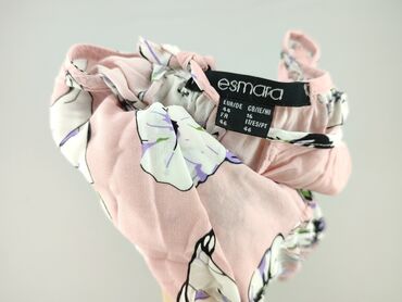 Bluzka/tunika damska Esmara - Kolor: pudrowy róż - Wzór: duże białe kwiaty z czarnymi i zielonymi akcentami - Krój: luźna tunika z odcięciem i delikatnym marszczeniem w talii, dłuższy dół - Dekolt...