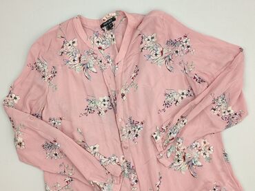 Koszula damska Esmara - Wzór: drobne pionowe paseczki w kolorze granatowym na białym tle, na całości nadruk kwiatowy w odcieniach różu, bordo, zieleni i czerni - Krój: dłuższy, lekko luźny, zaokrą...