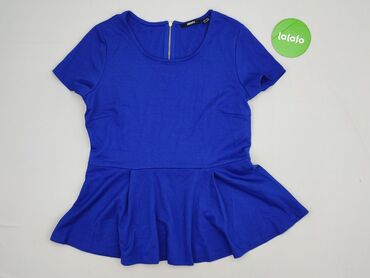 Czerwona bluzka damska Esmara z krótkim rękawem, charakteryzująca się ozdobną falbanką peplum w talii, która dodaje jej elegancji i podkreśla sylwetkę. Bluzka posiada okrągły dekolt i zapięcie na z...
