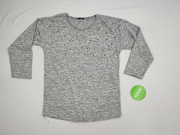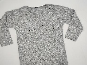 Szara bluzka damska z połyskującymi dżetami - Krój: luźny, z obniżoną linią ramion (nietoperz/oversize), okrągły dekolt - Kolor: melanżowy szary - Ozdoby: drobne, błyszczące dżety rozmieszczone z ...