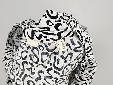 Uniwersalna bluzka na co dzień i do biura – świetnie wygląda do jeansów i eleganckich spodni. Kolory: biel z czarnym wzorem. Dla kobiety, rozmiar XL.