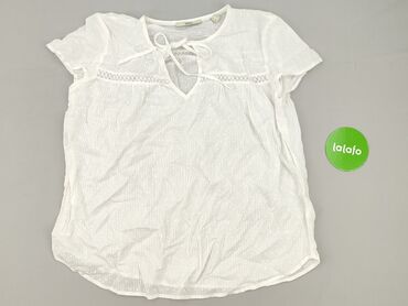 Bluzka damska Esprit - Kolor: biały - Krój: tunikowy, lekko rozkloszowany dół - Dekolt: kwadratowy z delikatną falbanką - Rękawy: krótkie, marszczone przy krawędziach - Przód: szeroki panel z elas...