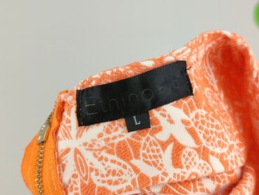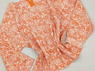 Bluzka damska Etquiesss, rozmiar L. - Krój: luźny, tunikowy - Dekolt: w kształcie litery V z czarną lamówką i krótką listwą guzikową (2 guziki) - Rękawy: długie, zakończone kontrastowym, pomarańcz...