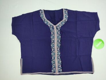 Bluzka damska z lekkiej, zwiewnej tkaniny - Krój: luźny, prosty, z krótkim rękawem typu kimono; dekolt w kształcie litery V - Wzór: geometryczno‑mozaikowy, turkusowo‑niebieski z akcentami bieli i ...Stan: