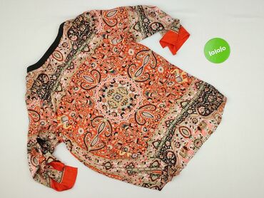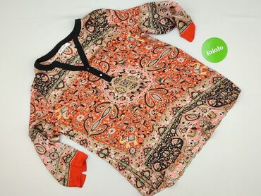 Bluzka damska Åshild, rozmiar 42 - Fason: luźniejszy, z marszczeniem w talii i przy mankietach, rękaw 3/4. - Dekolt: okrągły z krótkim rozcięciem i wiązaniem/sznureczkiem. - Wzór: paisley/ornament...