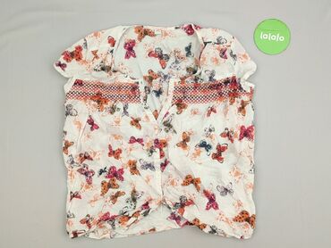 Bluzka H&M damska - Rozmiar: EU 34 (US/CA/MX 4), CN 160/80A - Skład: 100% wiskoza - Wzór: roślinny na jasnym tle – zielone liście i różowe pąki, miejscami delikatne motyle - Krój: luźny, prosty - ...