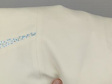 Biała damska koszula/bluzka z krótkim rękawem - Klasyczny krój, zapinana z przodu na cztery guziki - Ozdobny kołnierzyk z ażurową aplikacją - Mała kieszonka na piersi z dekoracyjną wstawką ażurową...
