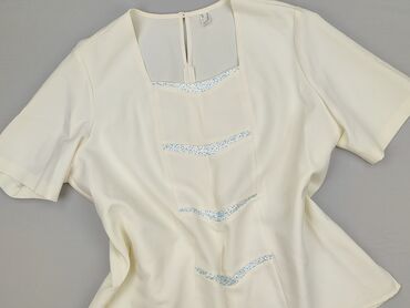 Bluzka damska M. Agilon, rozmiar XL - Kolor: ecru/kremowy - Fason: prosty, lekko wydłużony tył, małe rozcięcie z przodu u dołu - Rękaw: 3/4 - Dekolt: okrągły - Materiał: 97% wiskoza, 3% elastan – ...