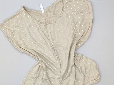 Bluzka damska w grochy - Kolor: jasny beż/ecru z czarnymi i szarymi kropkami - Krój: swobodny, lekko bufowany dół na elastycznej gumce - Dekolt: okrągły, z falbaną dookoła - Rękawy: krótkie, z del...Stan: