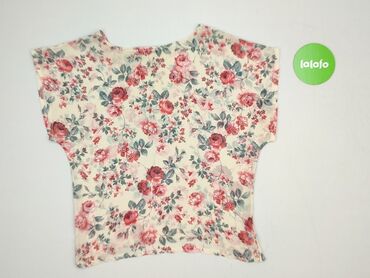 Bluzka damska w kwiaty - Krój: luźny, prosty, z krótkim rękawem typu kimono (opadające ramiona). - Dekolt: okrągły. - Zapięcie: łezka z guzikiem z tyłu karku. - Wzór: gęsty nadruk kwiatowy – odcie...