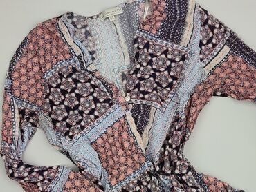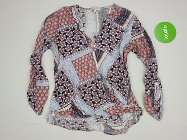Bluzka damska F&F - Rozmiar: EU 38 (UK 10, US 6 – na metce) - Krój: luźny, z krótkim rękawkiem typu kimono, okrągły dekolt - Przód: tkanina w kwiatowy wzór w odcieniach granatu, bieli i fioletu - ...