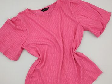 Bluzka damska F&F - Kolor: intensywny fuksja/magenta - Krój: luźny, lekko opływowy - Dekolt: w kształcie litery V z ozdobnym przeszyciem na środku - Rękawy: krótkie, lekko opadające (kimono/cap sl...