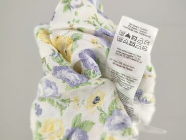 - Wzór: drobne kwiaty w odcieniach żółtym i fioletowym na jasnym tle