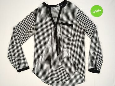 Bluzka damska H&M, rozmiar M (EUR/US/UK/CN 170/96A/M). - Krój: luźny, z krótkim rękawem typu kimono; dekolt w szpic (V-neck). - Wzór: czarno-biała pepitka. - Materiał: 95% poliester, 5% elastan – e...