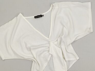 Biała bluzka damska marki PrettyLittleThing, wykonana w 100% z poliestru. Posiada długie, bufiaste rękawy z gumką na mankietach oraz kołnierzyk. Jest zapinana na guziki na całej długości. Idealna d...