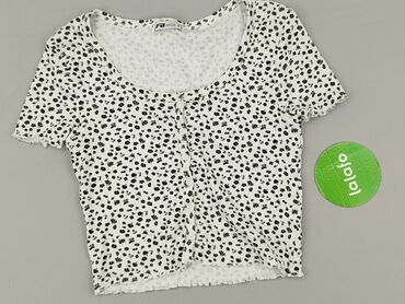 Bluzka damska FB Sister - Rozmiar: XXS (EU/158/62A – z metki) - Fason: krótka bluzka zapinana na guziki z przodu - Dekolt: głęboki, zaokrąglony - Rękaw: krótki, delikatnie marszczony przy brzegu -...