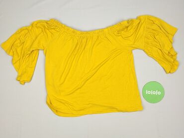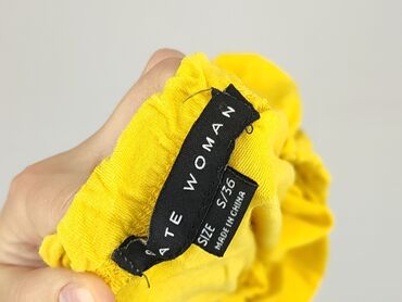 Bluzka damska WOMEN, rozmiar S - Kolor: intensywny musztardowo‑żółty - Krój: luźny, swobodny, z szerokim dekoltem na gumce (można nosić klasycznie lub opuszczoną na ramiona) - Rękawy: krótkie, lek...