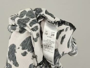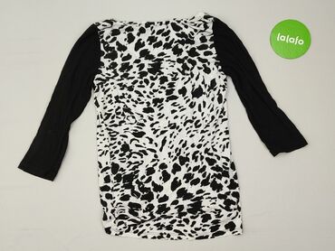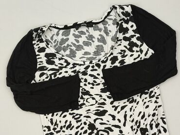 Bluzka damska George, rozmiar 14 (UE 42). - Fason: luźna, z szerokim okrągłym dekoltem na gumce; krótkie, rozkloszowane rękawy. - Wzór: czarno‑szare cętki na białym tle (animal print). - Materiał: ...