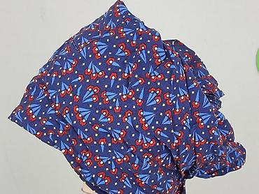 - Wzór: granatowe tło z geometryczno‑kwiatowym printem w odcieniach niebieskiego, czerwieni i żółci