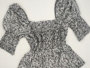 Czerwona bluzka damska SHEIN, rozmiar S (EU 36, US 4). - Krój: krótka, elastyczna gumka przy dekolcie i u dołu (efekt blouson). - Rękawy: krótkie, z tiulu/siateczki z aplikacjami 3D w kształcie kw...