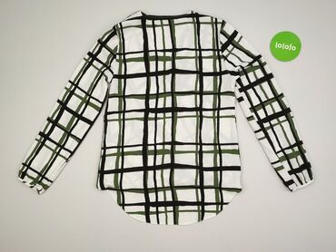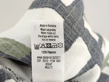 Bluzka damska George - Krój: krótka, luźna koszulowa bluzka z kołnierzykiem i zapięciem na guziki z przodu - Rękawy: bardzo krótkie/dolman (szerokie) - Wzór: granatowe tło w biały, geometryczny mo...Stan: