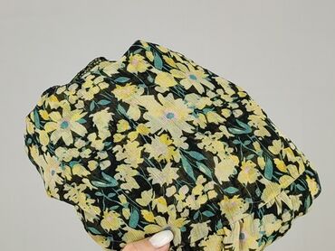- Wzór: gęsty nadruk w żółte i kremowe kwiaty z zielonymi listkami na czarnym tle