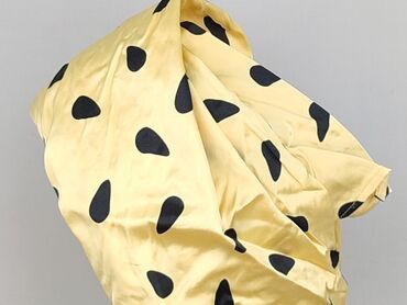 Damska bluzka w kolorze musztardowym z białymi groszkami i wzorem w srebrne łańcuchy. Bluzka ma luźny fason z dekoltem typu łódka i rękawami o długości 3/4, zakończonymi ściągaczem. Dolny brzeg blu...