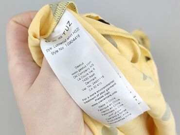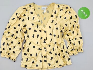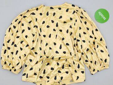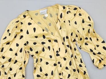 Bluzka damska H&M - Rozmiar z metki: EU 40 (US 10, CA 10, CN 170/92A) - Kolor: musztardowy/żółty z białymi grochami - Krój: dekolt V - Przód z marszczeniem i wiązaniem (ściągacz pozwalający regulo...