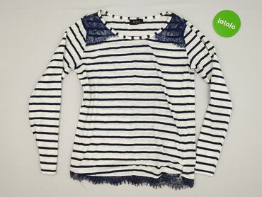 Idealna do jeansów i spódnic, łączy codzienny luz z kobiecymi detalami koronki. Marka: Gina, rozmiar z metki: 42. Kolor: biały z granatowymi pasami.