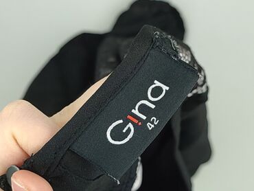 Bluzka damska marki Gina, o rozmiarze 46, wyróżnia się eleganckim wzorem szewron w odcieniach czerni i bieli. Posiada okrągły dekolt wykończony czarną lamówką oraz długie rękawy. Materiał jest teks...Stan: