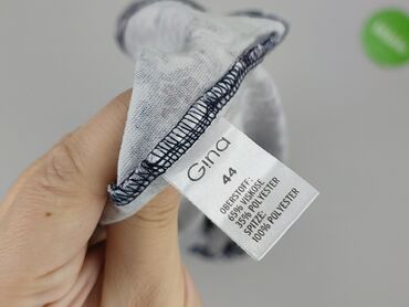 Bluzka damska Gina, rozmiar 46 - Fason: tunika z dekoltem w serek, wiązanie z czarnymi chwostami. - Rękaw: 3/4 z delikatną gumką przy mankiecie. - Wzór: czarno-białe, etniczne/boho motywy w pasy i...