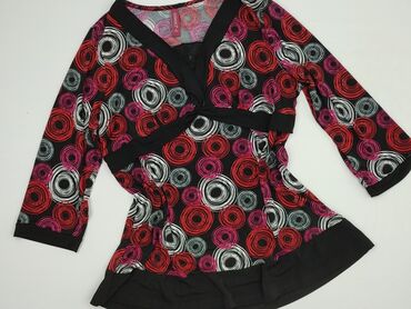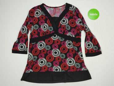 Bluzka damska z długim rękawem, rozmiar XL. - Wzór: geometryczny, kolorystyka czerń/czerwień/biel w blokach kolorów. - Dekolt asymetryczny zapinany na trzy ozdobne guziki. - Krój lekko luźny, dł...