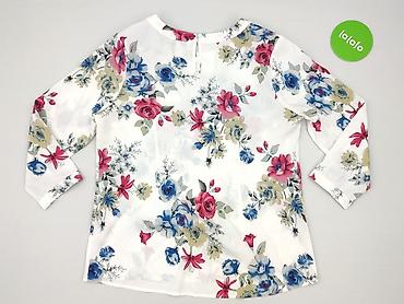 - Wzór: wyrazisty, kwiatowy print w odcieniach różu, niebieskiego i beżu na białym tle