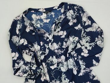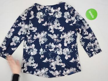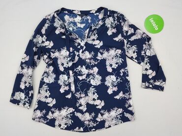 Bluzka damska Greenpoint - Rozmiar: 36 (z metki) - Fason: prosty, lekko dopasowany - Dekolt: w serek (V-neck) - Rękaw: długi - Kolor: granatowy - Wzór: kwiatowo-roślinny w stonowanych kolorach (bi...