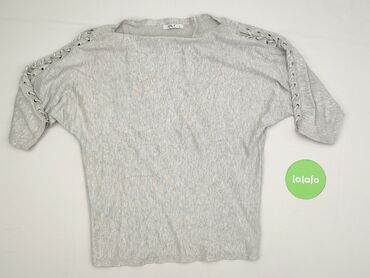 Szara bluzka damska Reserved, rozmiar S. - Kolor: jasnoszary melanż - Krój: luźniejsza góra z obniżoną linią ramion, długość do bioder - Rękawy: 3/4, ozdobne sznurowanie na obu rękawach przez meta...