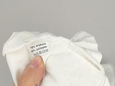 Biała bluzka damska o kroju oversize, zapinana na guziki. - Krój: krótki, szeroki, z opuszczoną linią ramion; rękawy krótkie, luźne - Dekolt: okrągły z rozcięciem przy zapięciu - Zapięcie: listwa ...