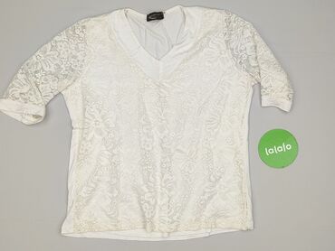Biała bluzka damska VIZZY Collection - Rozmiar z metki: 54 - Materiał: 100% bawełna (cienka, przewiewna tkanina) - Krój: prosty, lekko luźny, krótszy tył z małym rozporkiem po bokach - Rękaw: krót...