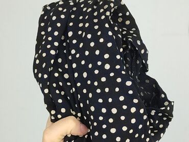 Czarna bluzka damska H&M w rozmiarze S, wykonana w 100% z poliestru. Bluzka charakteryzuje się wzorem w białe kropki, długimi rękawami oraz zapinaniem na guziki. Idealna do stylizacji codziennych, ...