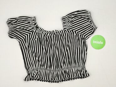 Bluzka H&M z krótkim rękawem, czarna, rozmiar S (EUR S, US S). - Krój z odkrytymi ramionami/łódkowy, elastyczna gumka przy dekolcie. - Wykończenia z dekoracyjnymi pomponikami przy rękawach i na dol...