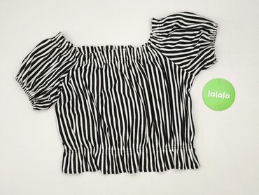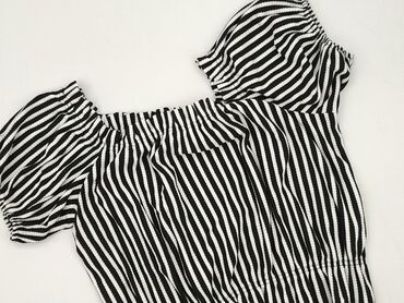 Bluzka damska H&M - Model: koszulowa bluzka z dekoltem w serek - Kolor: czarny w wąskie, pionowe paski - Krótki rękaw z lekkim marszczeniem na ramionach - Luźniejszy, lekko wydłużony fason z zaokr...