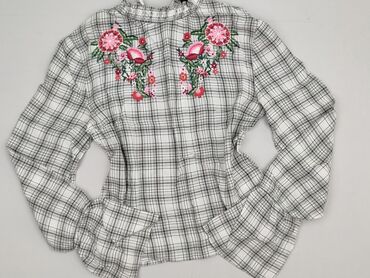 Bluzka H&M Divided – czarna w biało‑żółty wzór stokrotek - Model: koszulowa bluzka z kołnierzykiem - Zapięcie: guziki z przodu - Rękawy: długie, lekko bufiaste z marszczeniem przy mankietach - Fas...