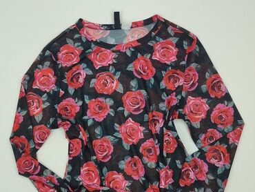 Bluzka damska H&M Divided - Model: dopasowana bluzka z długim rękawem - Rozmiar z metki: S (EUR S, UK S, CN 165/88A) - Wzór: pełny nadruk w róże w odcieniach czerwieni i różu na ciemnym tle - Mate...
