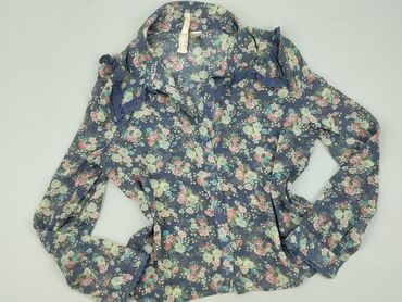 Bluzka damska DIVIDED by H&M - Model: koszula/bluzka z długim rękawem - Wzór: granatowa w białe motywy paisley/kwiatowe (styl bandana) - Fason: zapinana na guziki, kołnierzyk, lekko luźny krój - R...