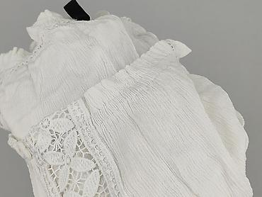 Biała, lekka bluzka damska z haftem angielskim w kwiaty. - Materiał: przewiewna tkanina z ażurowym, kwiatowym haftem (delikatnie półprzezroczysta). - Krój: luźny, prosty; opuszczone ramiona, krót...