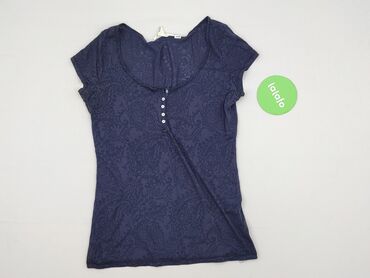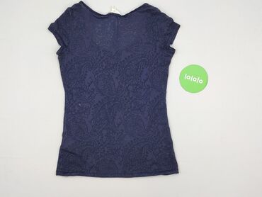 Bluzka damska H&M - Kolor: granatowy - Rozmiar z metki: EUR 36 / US 6 / CA 6 / CN 165/84A - Krój: taliowana z wiązaniami po bokach do regulacji obwodu w pasie - Rękaw: krótki - Dekolt: w serek - Z...