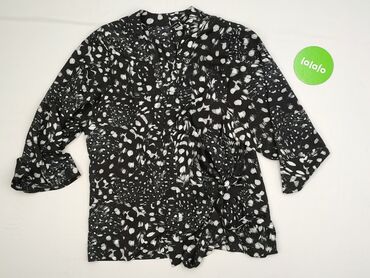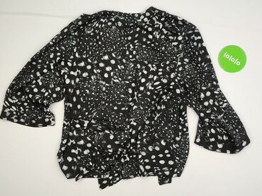 Bluzka/tunika So bin ich - Fason: kopertowy z zakładkami i drapowaniem w talii, lekko asymetryczny dół - Dekolt: w kształcie litery V - Rękawy: krótkie, luźne - Wzór: czarno‑biały, gęste owalne „k...