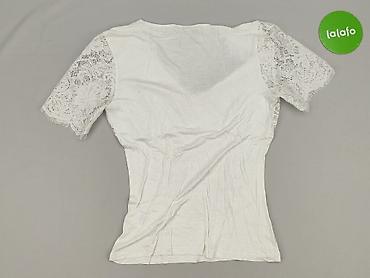 Bluzka damska TUTTI FRUTTI - Kolor: biały - Krój: luźny, lekko dłuższy tył - Dekolt: łódka - Rękaw: krótki - Dół wykończony koronkową wstawką z motywem kwiatowym (przód i tył) - Materiał: 100% wis...Stan: