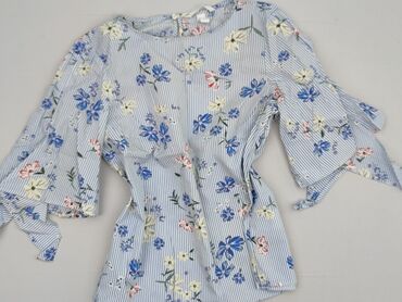 Używana bluzka damska marki H&M Divided w idealnym stanie. Bluzka jest w rozmiarze 38. Ma długie rękawy z wiązaniami oraz jest zapinana na guziki. Wzór w paski z motywem kwiatowym dodaje jej uroku.