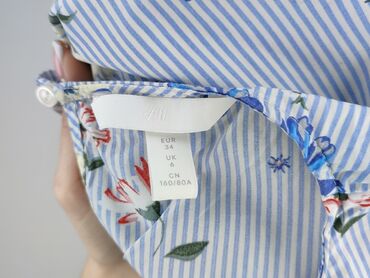 Bluzka damska H&M z krótkim rękawem - Marka: H&M - Rozmiar z metki: EUR 34 (US/CA 2) - Fason: luźniejszy T-shirt z dekoltem w serek, zaokrąglony dół, tył nieco dłuższy - Wzór: kwiatowy, wielobarwn...